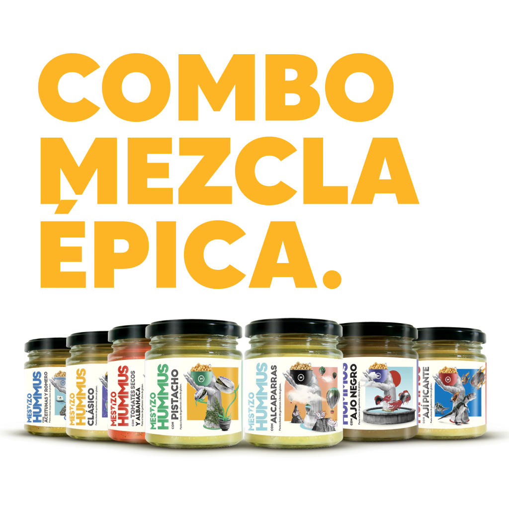 El combo definitivo, con un frasco de cada una de nuestras variedades de Hummus para mezclar con lo que sea que se te cruce por la cabeza. Lo único complejo va a ser decidir cual de todos te gusta más.